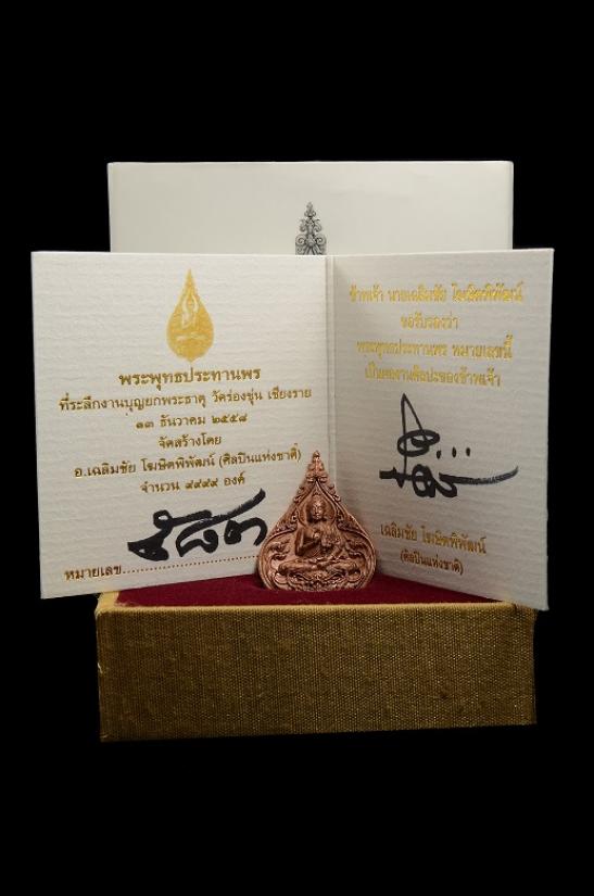 | ชื่อพระเครื่อง | พระพุทธประทานพร ที่ระลึกงานบุญยกพระธาตุ วัดร่องขุ่น ปี2558 เนื้อทองแดงพิมพ์เล็ก |
