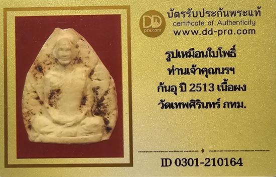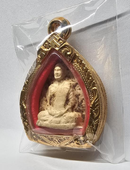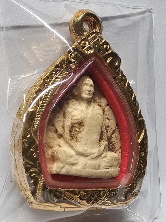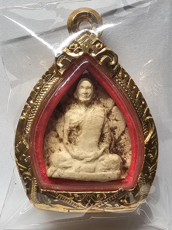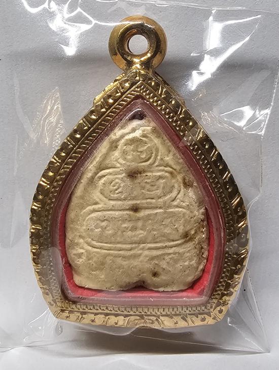 รูปเหมือนใบโพธิ์เนื้อผง ท่านเจ้าคุณนรฯ วัดเทพศิรินทร์ ก้นอุ ปี 2513 บิ่นปลายบน ตลับทองเลเซอร์