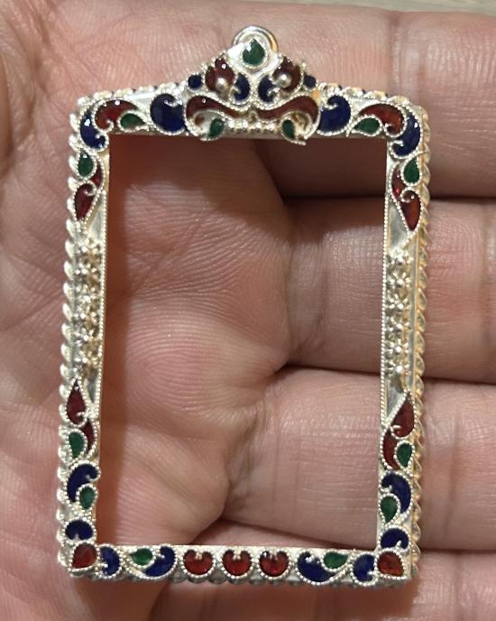 วัดใจ กรอบเงินแท้ งานดี %สูง ตีเกลียว ลงยาสุโขทัย ทรงสมเด็จ ขนาดตามรูป