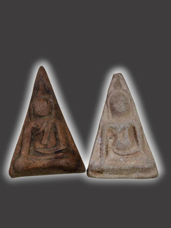 A2324.วัดใจ พระเนื้อดิน พิมพ์นางพญา 2 องค์ ไม่ทราบที่ เคาะเดียวเเดง |