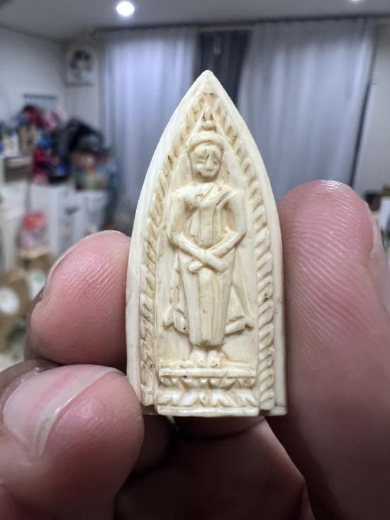 พระประจำวันอาทิตย์ ปางถวายเนตร เนื้องาแกะ หลังมีจาร ได้จากคนสุพรรณ