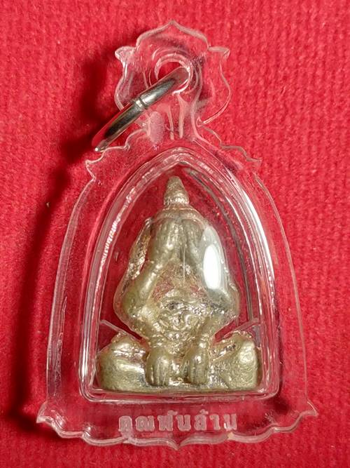 พระปิดตาหัวจรวด หลวงพ่อคูณ ปริสุทโธ รุ่น คูณพันล้าน ออกวัดบ้านไร่ ปี 37 เนื้อ เงิน ตอกโค๊ต ค.พ.ล เลี่ยมพร้อมใช้ เคาะเดียวแดง2