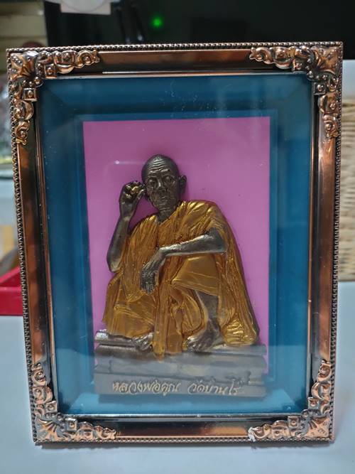 แผ่นกรอบรูปตั้งโต๊ะบูชา หลวงพ่อคูณ ปริสุทโธ ออกวัดบ้านไร่ ปี 2536 เนื้อ ซิลิก้าทาทอง พิมพ์นั่งเทห์ ขนาด 5 นิ้ว x 6 นิ้ว เคาะเดียวแดง