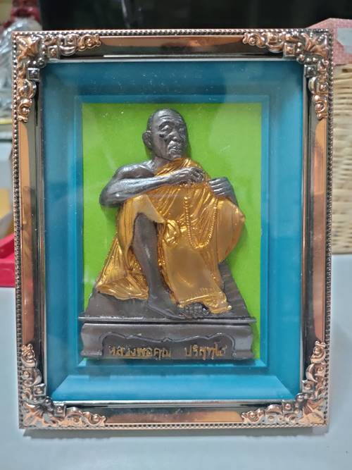 แผ่นกรอบรูปตั้งโต๊ะบูชา หลวงพ่อคูณ ปริสุทโธ ออกวัดบ้านไร่ ปี 2536 เนื้อ ซิลิก้าทาทอง พิมพ์นั่งชักประคำ ขนาด 5 นิ้ว x 6 นิ้ว เคาะเดียวแดง