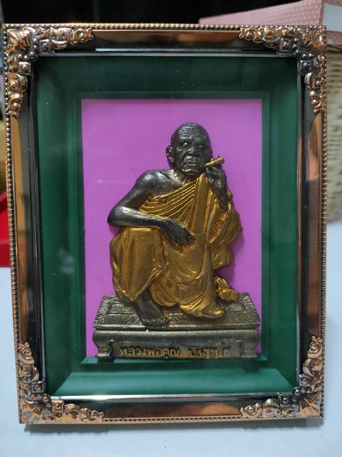 แผ่นกรอบรูปตั้งโต๊ะบูชา หลวงพ่อคูณ ปริสุทโธ ออกวัดบ้านไร่ ปี 2536 เนื้อ ซิลิก้าทาทอง พิมพ์นั่งสูบยา ขนาด 5 นิ้ว x 6 นิ้ว เคาะเดียวแดง