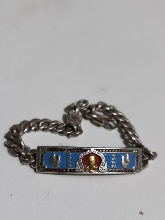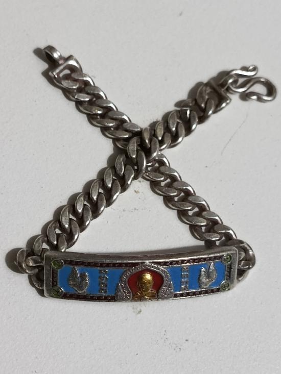 เลสข้อมือ....... หลวงพ่อรวย วัดตะโก จ.อยุธยา.......รุ่นเสาร์ 5 รวยเมตตาบารมี.ปี63 [ เนื้อเงินลงยาหน้าทองคำ ] หมายเลข 1549 ขนาด 1 บาทของผู้หญิง