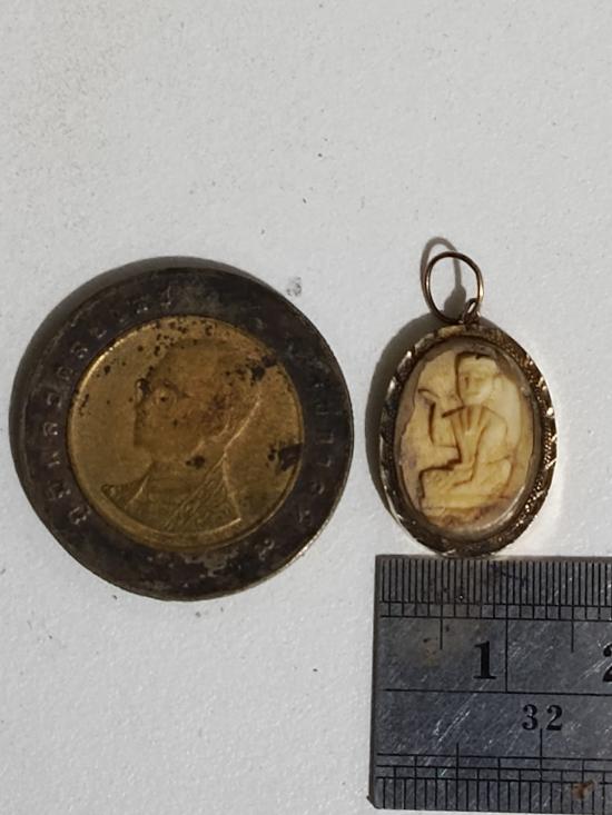 นางกวักงาแกะ หลวงพ่อกัน วัดเขาแก้ว [ เลี่ยมทองคำแท้พร้อมใบยิงเปอร์เซ็นต์ทอง ] เลี่ยมเก่า
