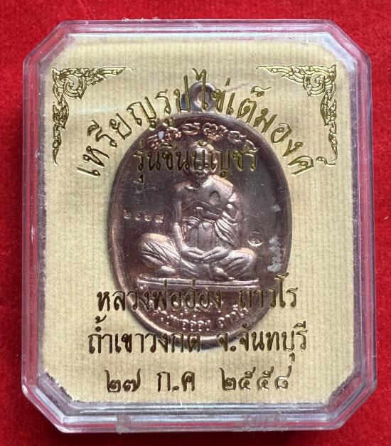 เหรียญรูปไข่เต็มองค์หลวงพ่ออ่อง วัดเขาวงกต จ.จันทบุรี รุ่นชินบัญชร ปี 2558 เนื้อทองแดงผิวไฟ หมายเลข 2069 |