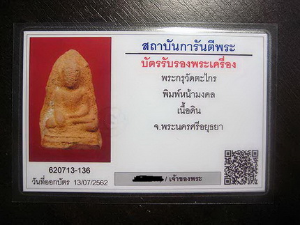 พระกรุวัดตะไกร พิมพ์หน้ามงคล เนื้อดิน จ.อยุธยา พร้อมบัตรครับ