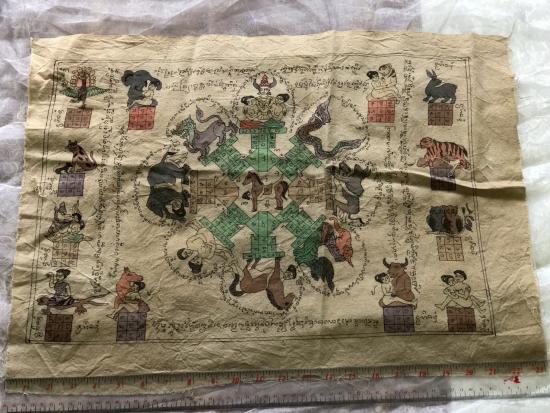 เคาะเดียว 330 ผ้ายันต์**เขียนมือ เพ้นท์สี ยันต์เสน่ห์สายล้านนา ผืนใหญ่ขนาด23นิ้ว |
