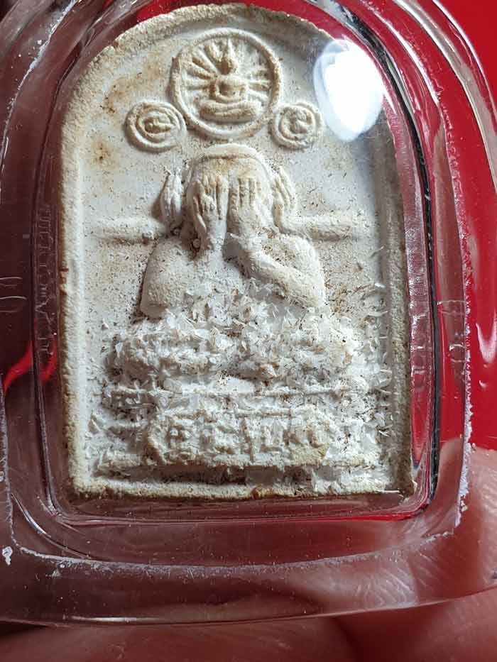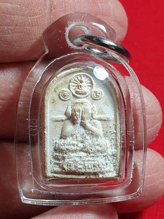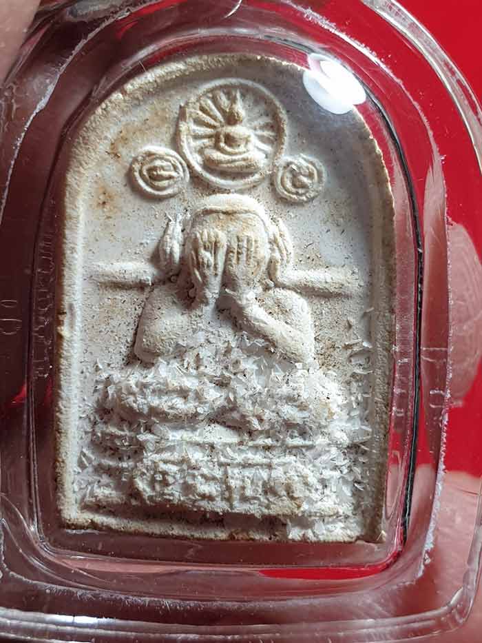 หลวงปู่ดู่ วัดสะแก พระปิดตาสรงน้ำ ปี 2528 เนื้อผงมีพระธรรมธาตุเสด็จ เคาะเดียวแดง 800