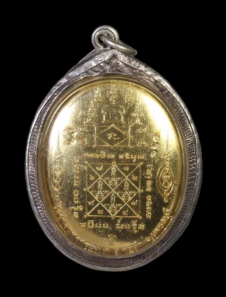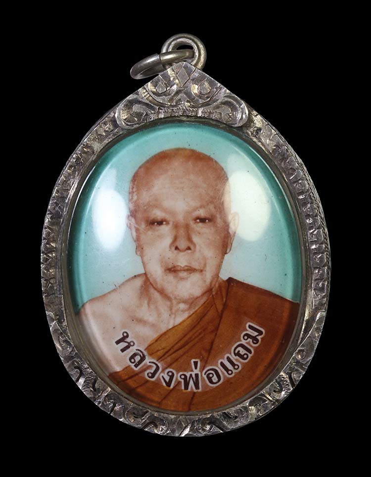 วัดใจ**เครื่องราง ล็อกเก็ตครึ่งองค์*{ รุ่นแรก }*ฉากเขียวใหญ่ หลังกะไหล่ทอง หลวงพ่อแถม วัดช้างแทงกระจาด จ.เพชรบุรี ปี2553*{ ข้างในบรรจุเกศา+มีรอยจาร }*เลี่ยมกรอบเงินสั่งทำ....สวยครับ