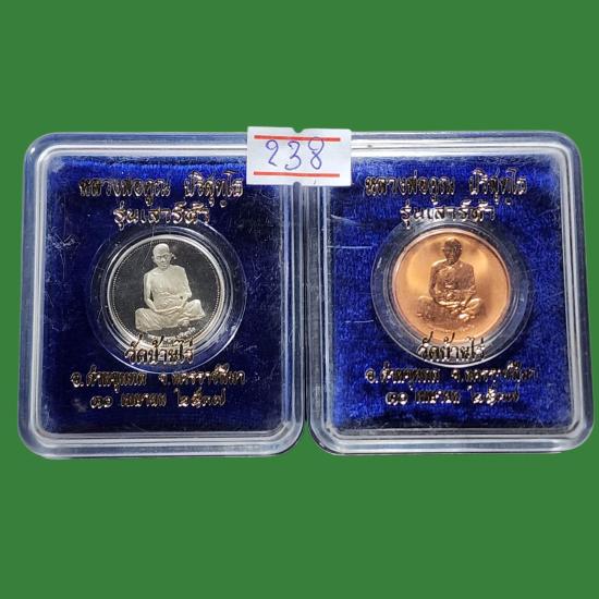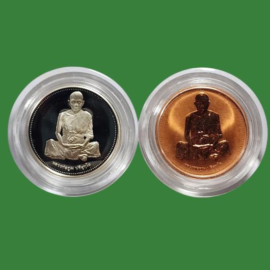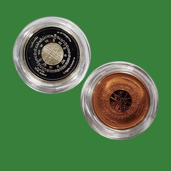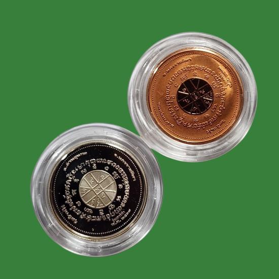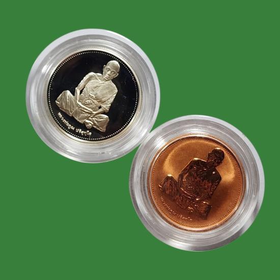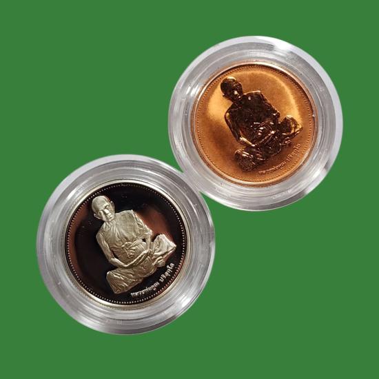 หลวงพ่อคูณ วัดบ้านไร่ รุ่นเสาร์ห้า พ.ศ.2537 เนื้อเงินขัดเงา + ทองแดงขัดเงา สภาพสวยตามรูป 2 องค์