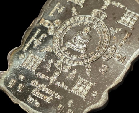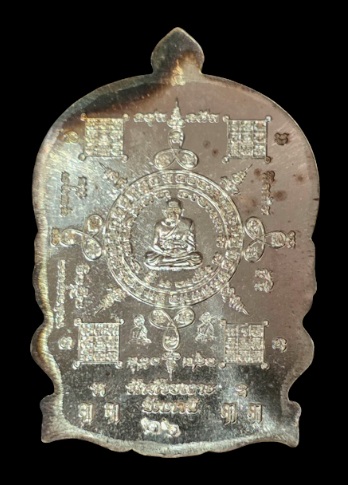 ด้านหลังเหรียญประทับด้วยยันต์หลวงปู่ทวด พร้อมตอกโค๊ตและหมายเลขกำกับ