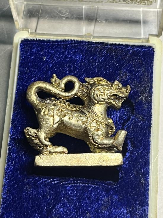 พญาราชสีห์หล่อรุ่นแรก หลวงพ่อมี วัดมารวิชัย เนื้อเงิน พร้อมกล่องเดิม