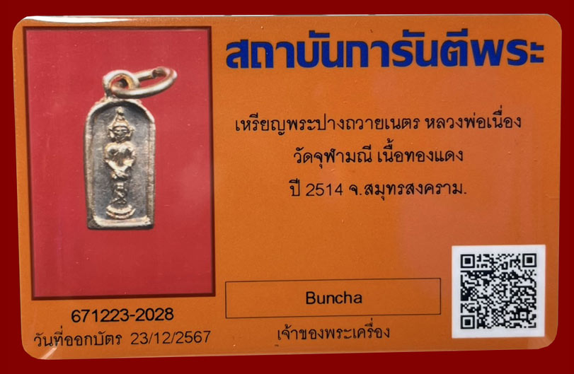 เหรียญพระประจำวัน พิมพ์พระปางถวายเนตร(วันอาทิตย์) ปี2514 หลวงพ่อเนื่อง วัดจุฬามณีฯ จ.สมุทรสงคราม เนื้อทองแดงผิวไฟ