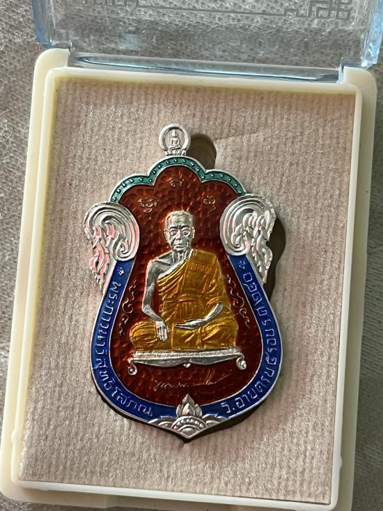 พระมหาสุรศักดิ์ วัดประดู่พระอารามหลวง เสมา เงินลงยา สภาพสวยมาก เลขสวยมาก พร้อมกล่องเดิม