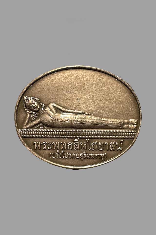 เหรียญหลวงพ่อนอน พระพุทธสีหไสยาสน์ ปางโปรดอสุรินทราหู วัดป่าธรรมโสภณ ปี54 |