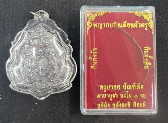 พญากบกินเดือนตัวครูเนื้อเงินยวงครูบาออเลี่ยมพร้อมใช้พร้อมกล่องเดิม