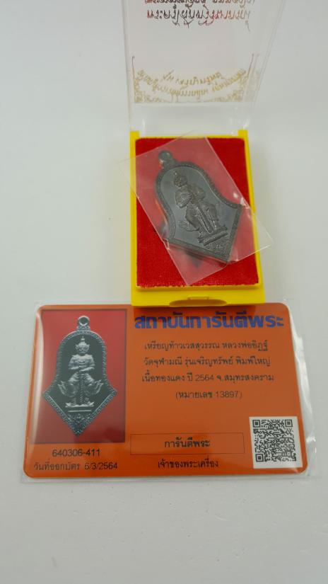 เหรียญท้าวเวสสุวรรณ หลวงพ่ออิฏฐ์ วัดจุฬามณี รุ่นเจริญทรัพย์พิมพ์ใหญ่ เนื้อทองแดง ๒๕๖๓ จ.สมุทรสงคราม (หมายเลข ๑๘๓๙๗ )มีบัตรครับ