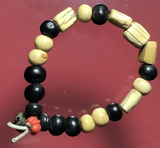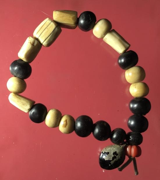 สร้อยข้อมืองาแท้+เม็ดประคำเนื้อผงคลุกรักเก่า |