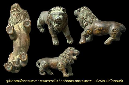 รูปหล่อสิงห์โตทองมหาลาภ พระอาจารย์บัว วัดหลักศิลามงคล จ.นครพนม ปี2519 เนื้อโลหะรมดำ เคาะเดียว