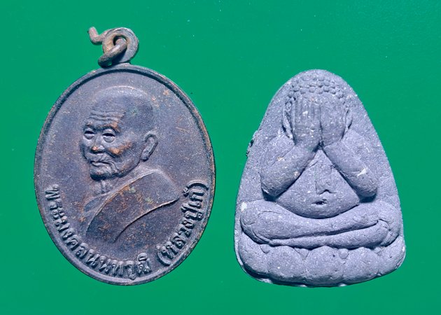 300.- @@ " เหรียญรุ่นเด็กวัด + พระปิดตาผงใบลาน " หลวงปู่เก๋ วัดปากน้ำ นนทบุรี @@