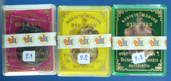 พระมหาสุรศักดิ์ วัดประดู่ฯ สุมทรสงคราม เหรียญเสมา 5 รอบ อายุวัฒนมงคล 60 ปี เนื้อนวะโลหะ-เนื้อสัตตะ-เนื้อทองแดง ซีลเดิมยังไม่แกะ เอาไปลุ้นเลขเอง รวม 3 เหรียญ