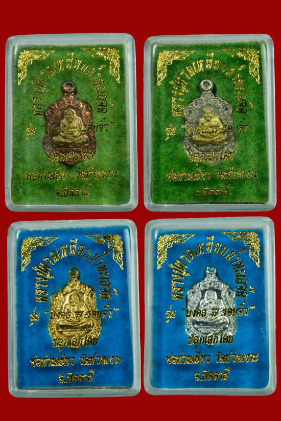 วัดใจ ๔ เหรียญ เหรียญเสมาทที่ระลึก ๗ รอบ พ่อท่านเขียว ปลุกเสกนาน ๒ ปี |