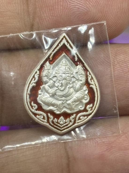 HOT!!! เหรียญพระพิฆเนศ รวยสมปรารถนา เนื้อเงินลงยาสีแดง เลขเรียงสลับ 534 ปี 2555 หลวงพ่อรวย วัดตะโก แท้ทัน เคาะเดียวแดง