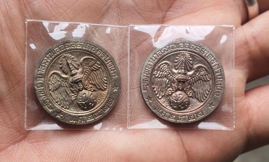 เหรียญคุ้มเกล้า ในหลวง ร.9 เนื้อนวะผิว ออกพลายเงิน ปี 2522 จำนวน2เหรียญสวยเดิมๆๆ |