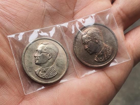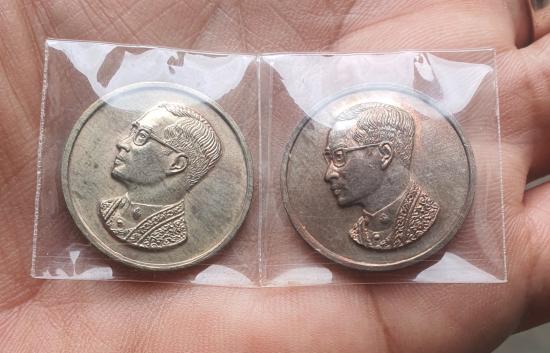 วัดใจเหรียญคุ้มเกล้า ในหลวง ร.9 เนื้อนวะผิว ออกพลายเงิน ปี 2522 จำนวน2เหรียญสวยเดิมๆๆ |