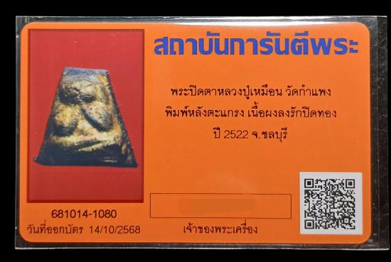 เคาะเดียวต่ำกว่าทุน...ปิดตาหลวงปู่เหมือน วัดกำแพง พิมพ์หลังตะแกรง เนื้อผงลงรักปิดทอง ปี22 จ.ชลบุรี พร้อมบัตรรับรองจากทางเว็บ