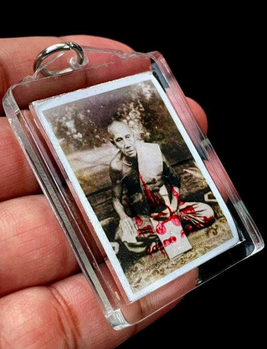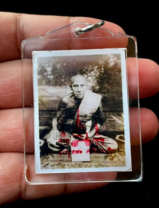 วัดใจ รูปถ่าย หลังติดหนังเสือ หลวงพ่อกลั่น วัดพระญาติการาม จ.อยุธยา เลี่ยมพลาสติก สวยงาม
