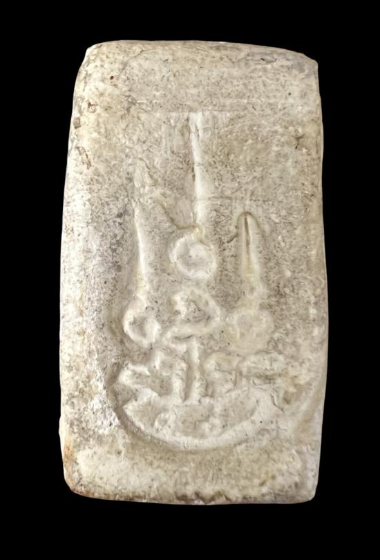 พระเนื้อผงขุดสระ หลวงปู่เผือก วัดกิ่งแก้ว จังหวัดสมุทรปราการ ปี 2502 หลังยันต์สามยอด พิมพ์บัวคว่ำบัวหงาย |