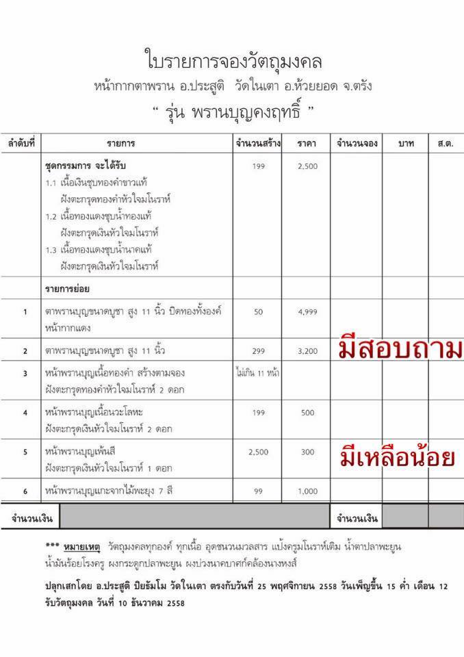หน้ากากพรานบุญของท่านอาจารย์ประสูติจะออกกี่รุ่นๆจ่อกี่รุ่นก็ล้วนแล้วแต่ได้รับความนิยม เพราะมากด้วยประสบการณ์เมตตา โชคลาภ ค้าขาย รุ่นนี้ก็เป็นอีกรุ่นของท่านที่ทำพิธีถูกต้องตามตำรา โดยให้คณะมโนราห์ มาเชิญครูมโนราห์ เชิญตาพราน อย่างเข้มขลังเหลือคณานับครับ แล้วยังปลุกเสกโดยท่านอาจารย์ประสูติและพ่อท่านลาภ2เกจิขลังของตรังด้วยแล้ว ความขลังไม่ต้องถามถึงเลยครับ