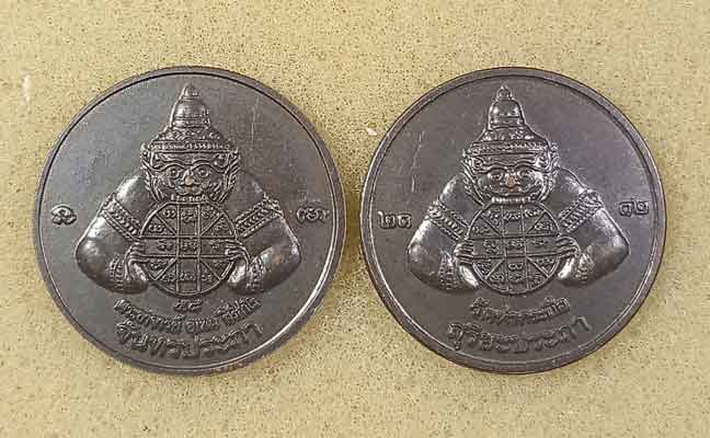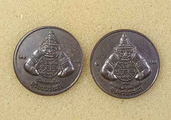 เหรียญราหูอมจันทร์ พระอาจารย์อุเทน วัดท่ากระบือ สมุทรสาคร ปี 2548 2 เหรียญ