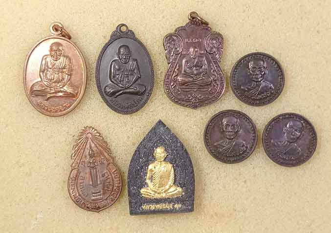 เหรียญหลวงพ่อปาน คลองด่าน 2 เหรียญ +เหรียญหลวงพ่อผา วัดไตรสามัคคี สมุทรปราการ+เหรียญหลวงพ่อบ้านแหลม วัดครุนอก+ผงหลวงพ่อแฉ่ง วัดราษฎรนิยม นนทฯ+เหรียญหลวงพ่อสนธิ์ วัดปราสาท นนทฯ 3เหรียญ |