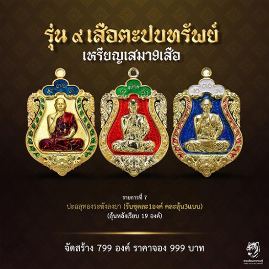 @@@ เหรียญปะฉลุทองระฆังลงยา รุ่นเก้าเสิอตะปบทรัพย์ ครูบาเกียรติยศ พรหมปัญโญ วัดบ้านแก่น ลำปาง ซีนเดิม ลุ้นลงยาสวยงาม 3 แบบ ลุ้นเลขสวยและลุ้นพิเศษหลังเรียบ @@@