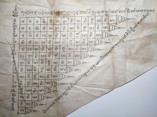 ผ้ายันต์พระฉิมพลี สีขาว เก่า ไม่ทราบที่