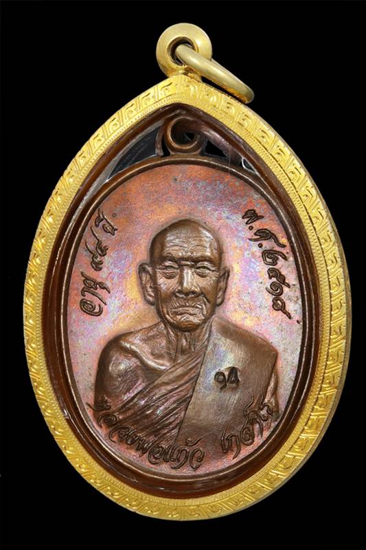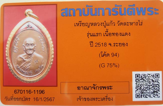 เหรียญรุ่นแรก หลวงปู่แก้ว เกสาโร วัดละหารไร่ เนื้อทองแดง (โค๊ด94 กรรมการ หายาก สร้างน้อย) เลี่ยมทอง สภาพสวย พร้อมบัตรรับรอง