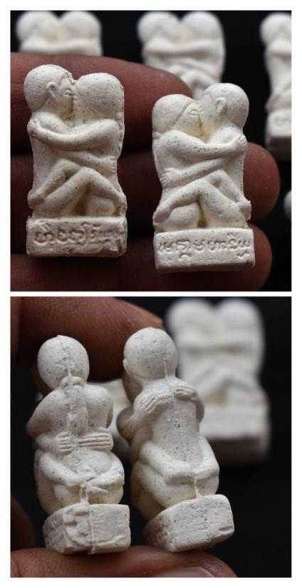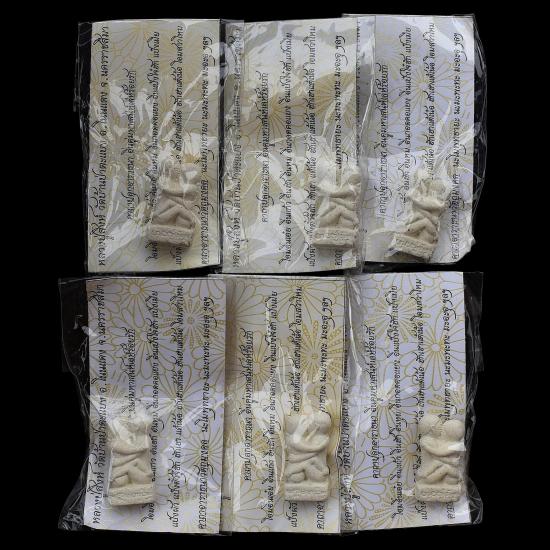 ชุด 6 องค์...อิ้นคู่มหาเสน่ห์เล่ห์ร้อยรัก เนื้อผงมหาเสน่ห์ฯ (เนื้อขาว) ปี 2558 หลวงปู่สิงห์ วัดบ้านป่าตะแบง จ.นครราชสีมา พร้อมซองใบคาถาเดิมจากวัด สภาพพระตามรูปที่ลงทุกประการ (ขนาดประมาณ 3.2 x 1.6 ซม.)