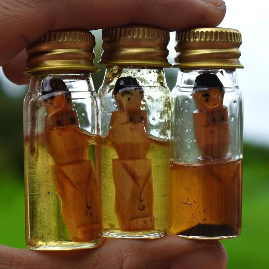 ชุด 3 ขวด...กุมารทองคะนองทรัพย์ในน้ำมัน ปี 2559 หลวงปู่สิงห์ วัดบ้านป่าตะแบง จ.นครราชสีมา พร้อมซองรูปเดิมจากวัด สภาพพระตามรูปที่ลงทุกประการ (ขนาดขวดประมาณ 5.6 x 2 ซม.)