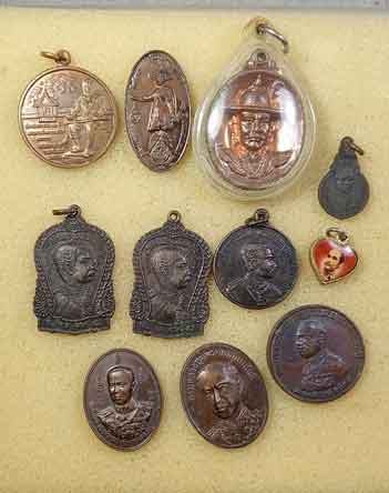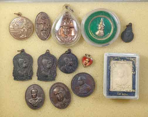 เหรียญสมเด็จพระนเรศวรมหาราช+ เหรียญพระเจ้าตากสินมหาราช+เหรียญสมเด็จพระนารายณ์มหาราช+เหรียญร.2+เหรียญร.5 2เหรียญ+ล็อกเก็ตร.5+เหรียญร.6+เหรียญกรมหลวงชุมพรฯ 3 เหรียญ+พระผงร.9 |