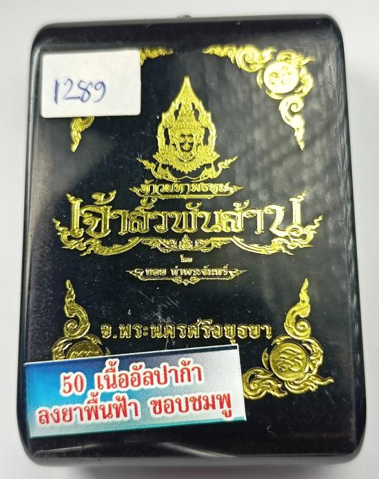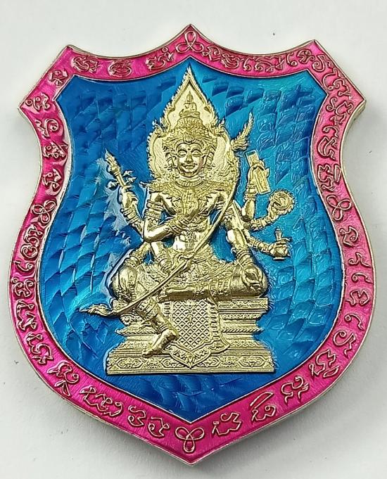 เหรียญท้าวมหาพรหม เจ้าสัวพันล้าน (จัดสร้างโดยบอย ท่าพระจันทร์) เนื้ออาปาก้าลงยา ลงยาพื้นสีฟ้า ขอบชมพู เบอร์ 1289 พร้อมกล่องครับ