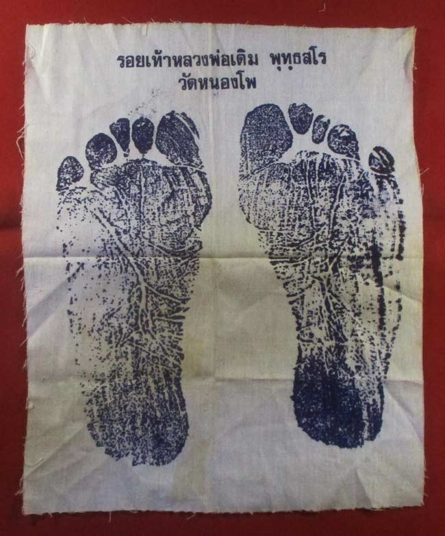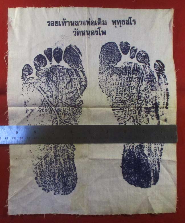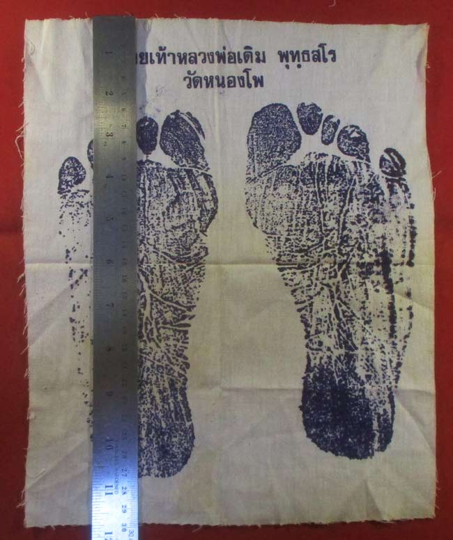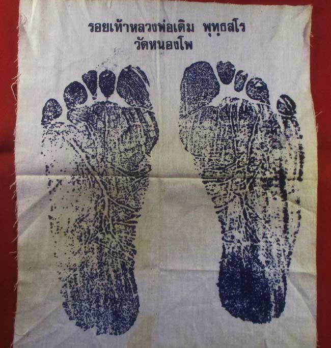 ผ้ายันต์ รอยท้าวหลวงพ่อเดิม พุทฺธโร วัดหนองโพ ครับ (พระบ้าน ครับ)