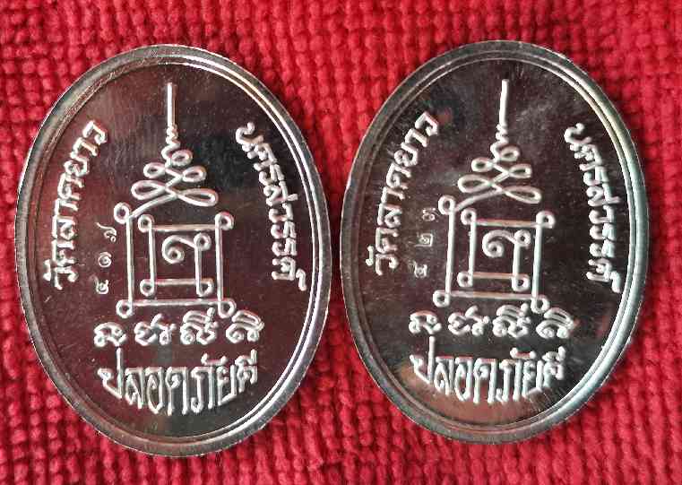 เหรียญเงิน 2 เหรียญ ลป เปลื้อง วัดลาดยาว นครสวรรค์ รุ่นดวงดีมีเงิน อายุ 9 รอบ 108 ปี |