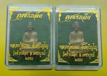 คู่สวย รูปเหมือนหล่อ เนื้อทองชนวน ย้อนยุค หลวงพ่อทบ รุ่นเพชรกลับ หลวงปู่พรหม วัดช้างเผือก จ.เพชรบูรณ์ ปี ๕๘ สวย พร้อมกล่องเดิม หมายเลข ๑๘๗๙ ๑๖๙๘ วัดใจ |