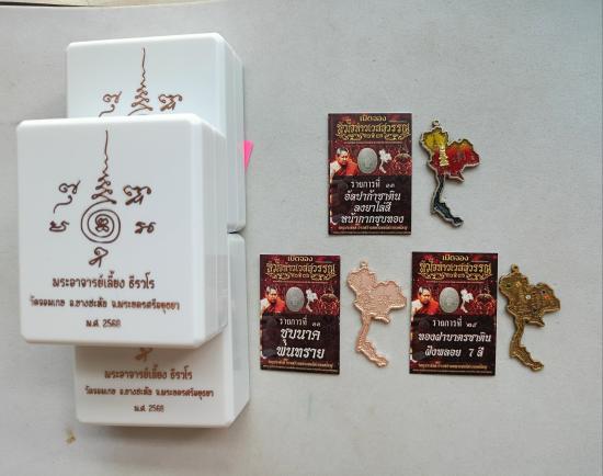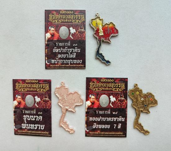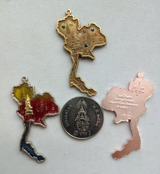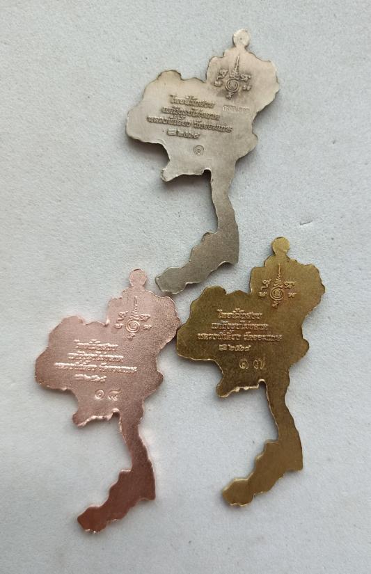 วัดใจเคาะเดียวแดงจ้า เหรียญแผนที่ประเทศไทย พระอาจารย์เลี้ยง วัดจอมเกษ 3เหรียญ คละเนื้อ มีหมายเลข1 เคาะเดียวแดงจ้า