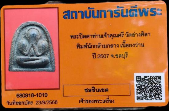 พระปิดตาท่านเจ้าคุณศรี วัดอ่างศิลา พิมพ์นักกล้ามกลาง เนื้อผงว่านผสมไม้โพธิ์หัก ปี2507 จ.ชลบุรี พร้อมบัตรจี